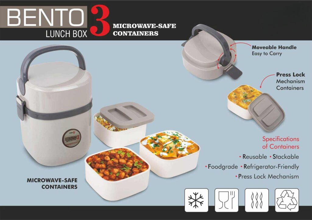 - Container : 3 Food Grade Plastic Containers with Press-Lock mechanism