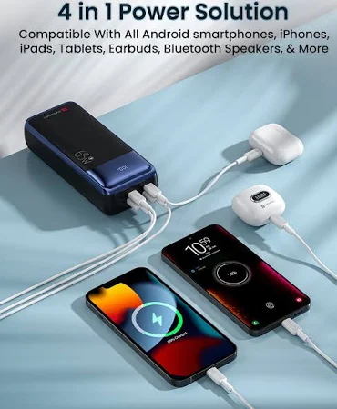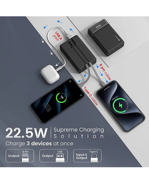 - 27000mAh Powerbank : Features a colossal 27000mAh battery capacity, providing enough juice to charge your devices for days.