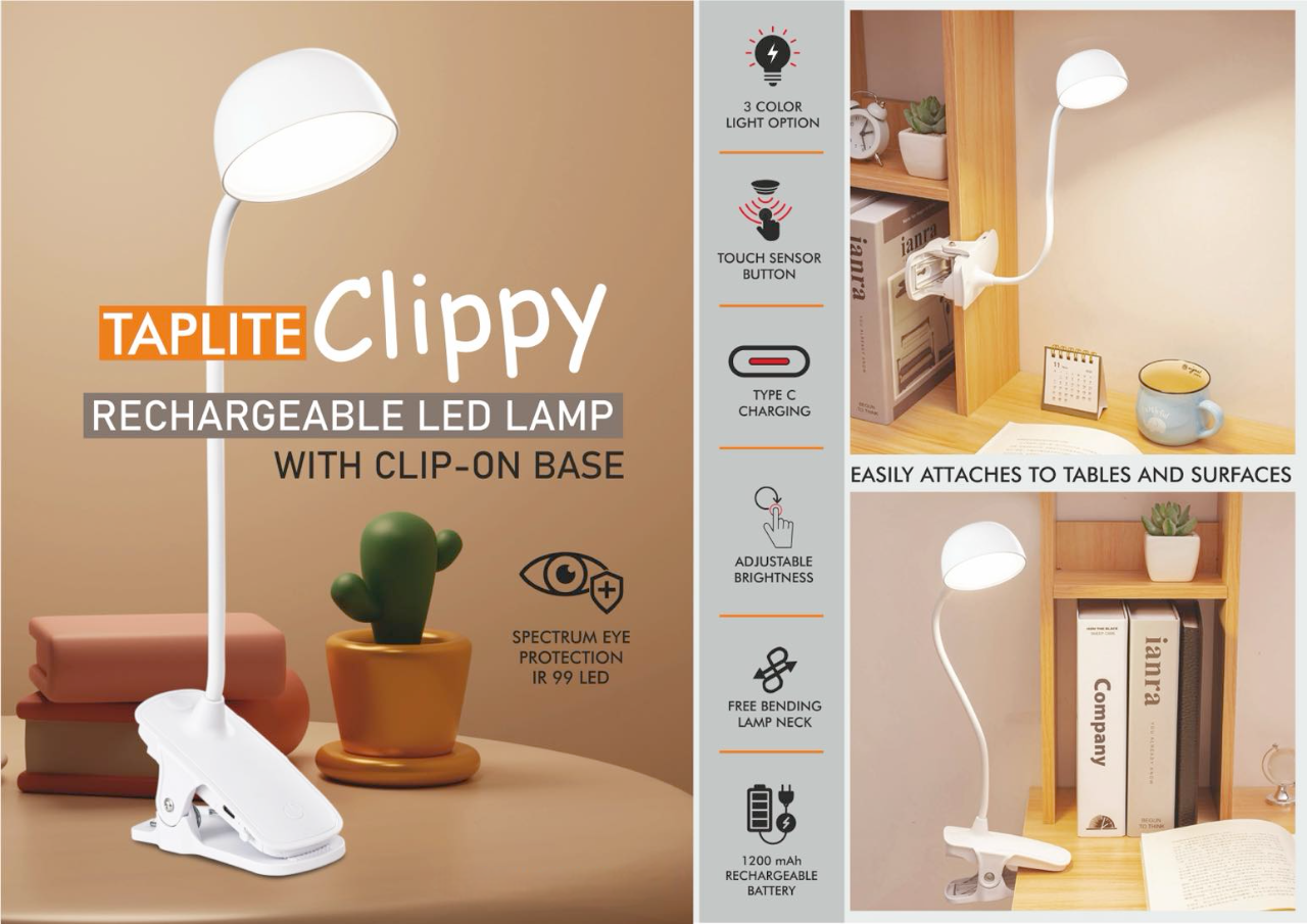 - Design : Compact LED lamp with strong clip-on base
